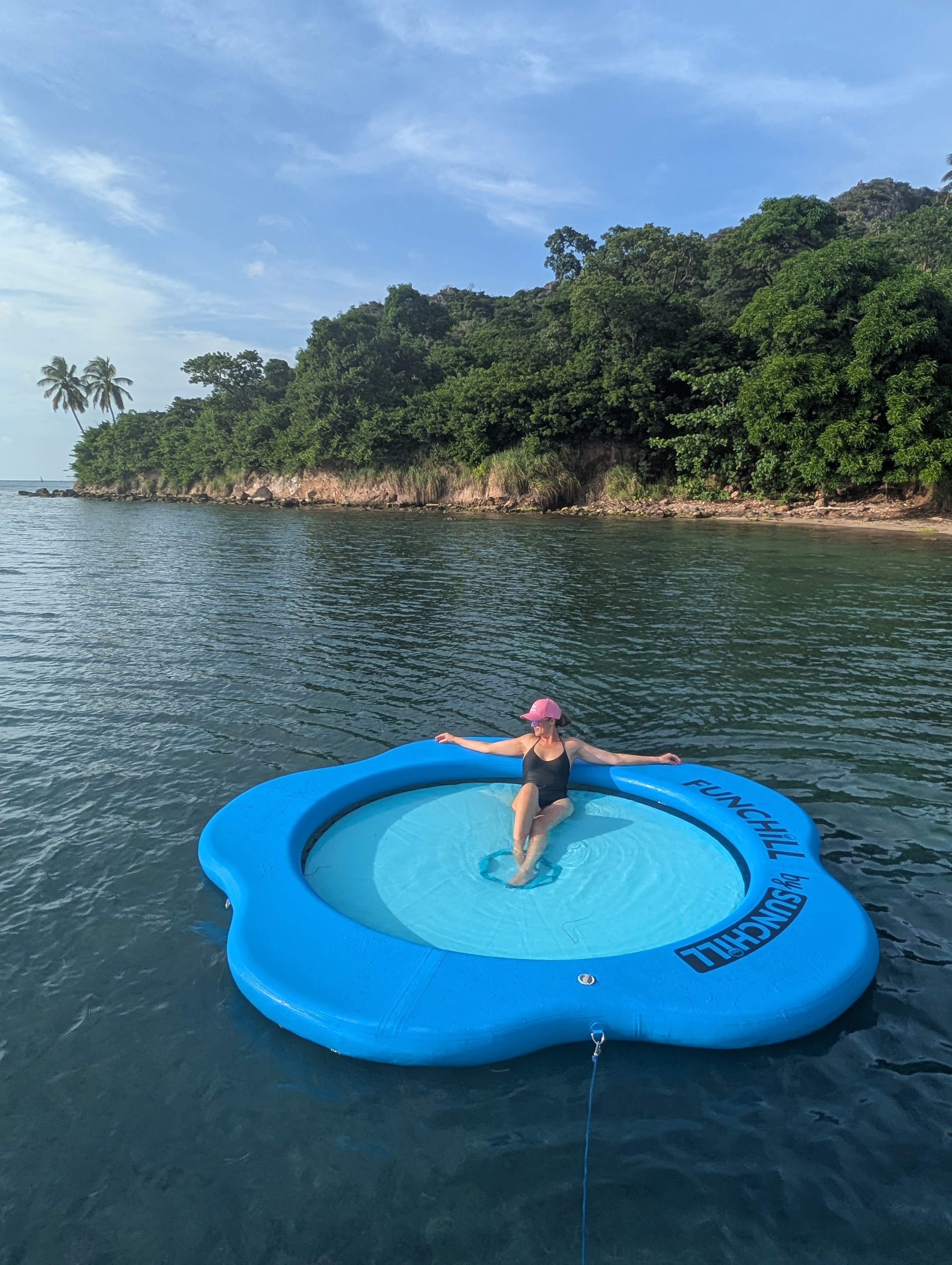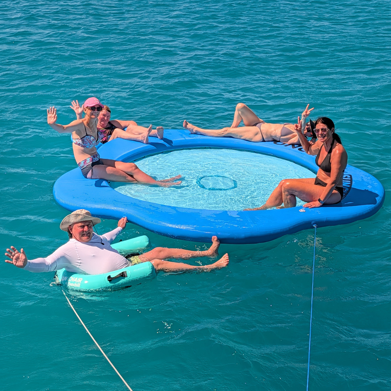 The newest 10 footer is here! The Funchill is designed for a large group, with 5 extremely buoyant curves that allow adults to lay out and sun bathe while the rest of the crew chills in the center like a traditional Sunchill.